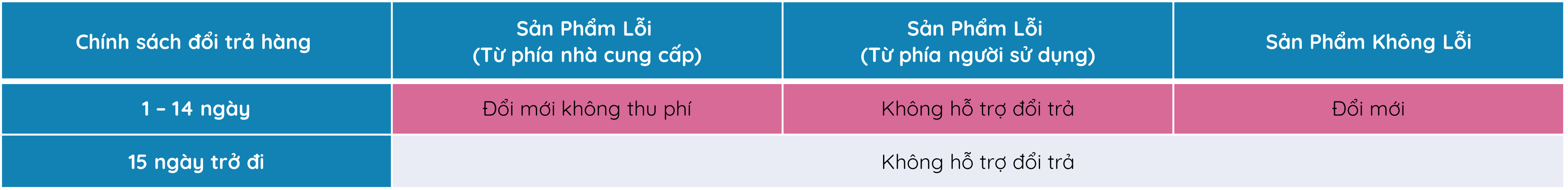 - Sản phẩm đã quá hạn đổi trả (14 ngày).